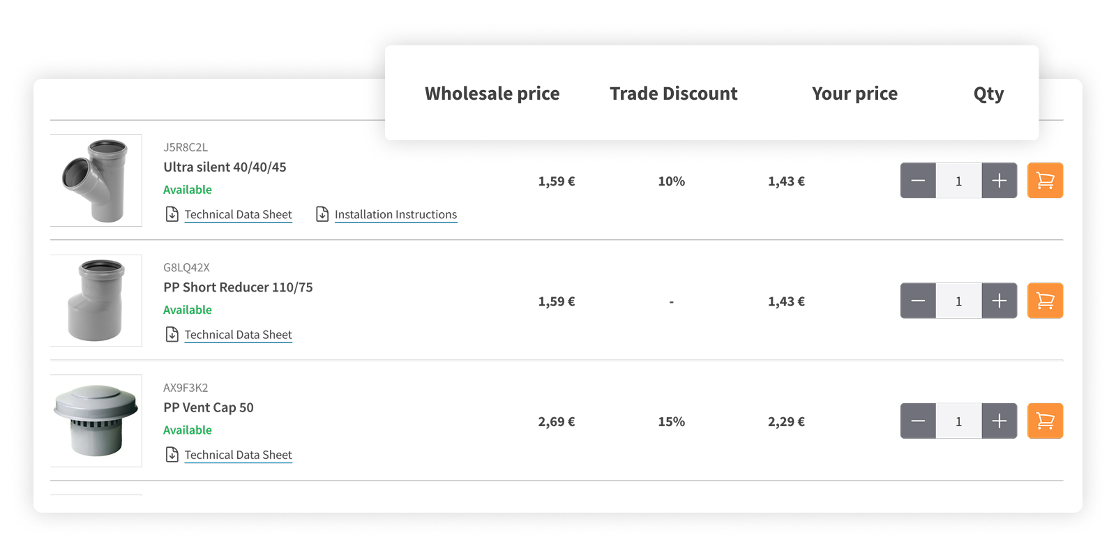 - Quick order putem SKU-a
