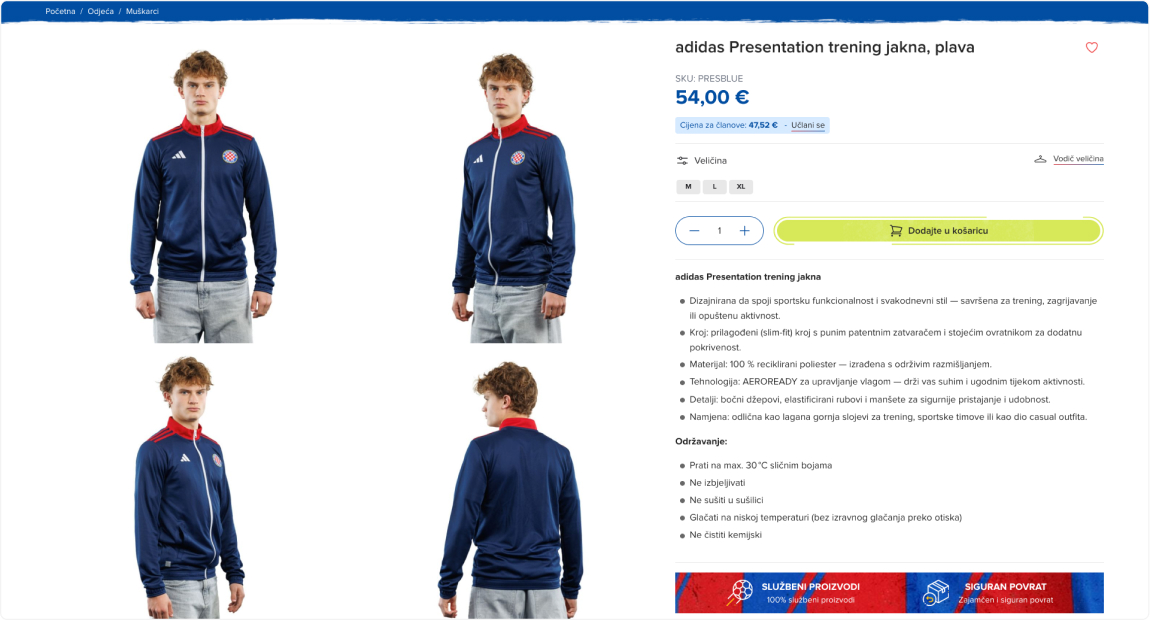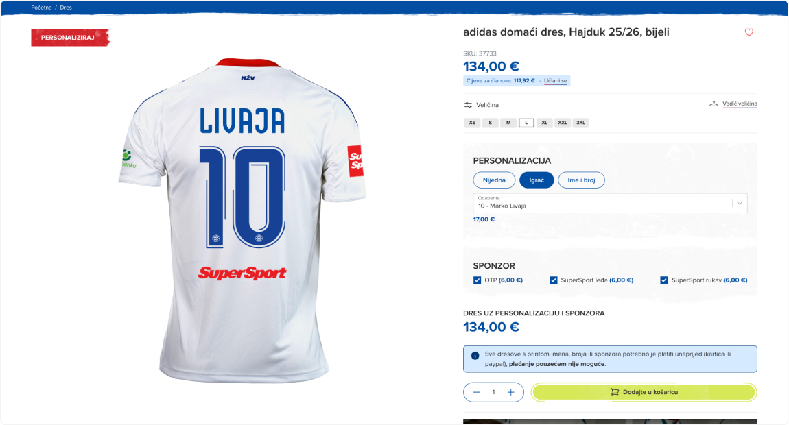 Posebnu pažnju posvetili smo personalizaciji proizvoda, primjerice dresovima koji omogućuju navijačima da dodaju svoje imene, željeni broj te čak i logotipe klupskih sponzora. Tako se navijačima pruža prilika da spoje personalizirane elemente s autentičnim značajkama aktivne sezone.